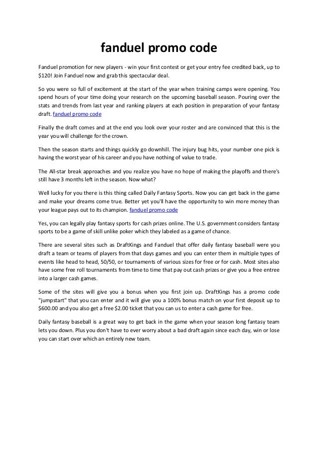 › Promo code for fanduel